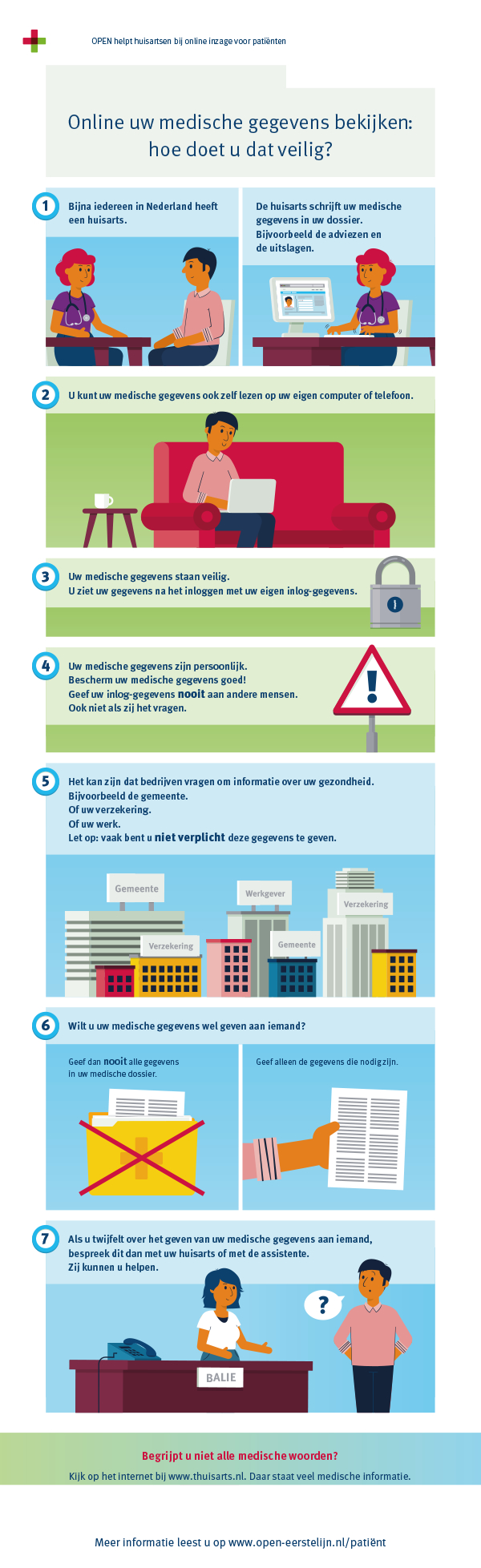 Wanneer u uw dossier op MijnGezondheid.net wilt openen, geeft u uw interesse aan bij de huisartsenpraktijk. Wij zorgen voor een uitnodiging waarmee u toegang krijgt tot MijnGezondheid.net. Wanneer u als patiënt bent aangemeld op het portaal van Mijngezondheid.net ontvangt u, van uw zorgverlener, hierover een bevestiging. Zodra u als patiënt voor de eerste keer op MijnGezondheid.net inlogt zult u het contract met uw zorgverlener digitaal ondertekenen. Door deze akkoordverklaring digitaal te ondertekenen bent u ervan verzekerd dat de uitwisseling van uw gegevens met de praktijk goed en betrouwbaar is geregeld.